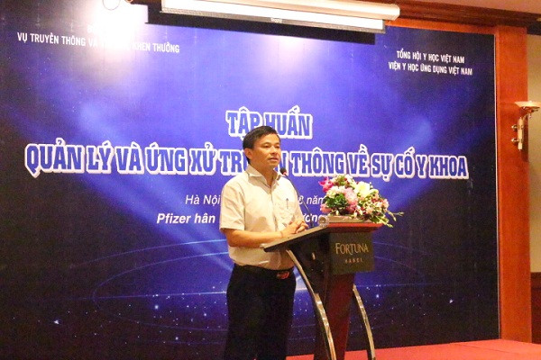 Những sự cố y khoa xảy ra trong thời gian gần đây luôn thu hút sự quan tâm cao độ của người dân và dư luận xã hội, đặt toàn ngành y tế nói chung và mỗi bệnh viện, mỗi cán bộ y tế nói riêng trước những thách thức chưa từng có trong lịch sử ngành y tế. Xuất phát từ mong muốn giúp các bệnh viện, và các nhân viên y tế có phương pháp quản lý sự cố y khoa đúng đắn cũng như ứng xử truyền thông phù hợp, Vụ Truyền thông và Thi đua, khen thưởng - Bộ Y tế phối hợp Viện Y học ứng dụng Việt Nam - Tổng hội Y học Việt Nam, với sự tài trợ của công ty Pfizer đã tổ chức hai lớp tập huấn " Quản lý và ứng xử truyền thông về sự cố y khoa ", với sự tham dự của 250 học viên là Lãnh đạo bệnh viện, Trưởng các phòng/tổ Công tác xã hội, Trưởng các khoa Lâm sàng của gần 80 Bệnh viện Trung ương, bệnh viện thành phốcủa TP. Hồ Chí Minh và Hà Nội. Đại diện các Hội chuyên khoa thuộc Tổng hội Y học Việt Nam cũng tham dự, trao đổi tại lớp tập huấn.