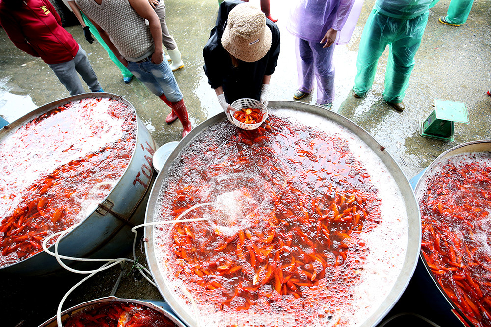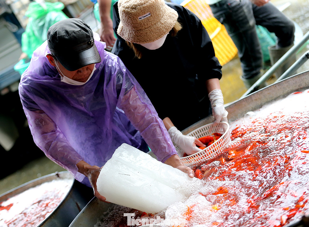 Tiểu thương tăng cường thêm đá lạnh để cho cá khỏe hơn và không bị ngạt khí