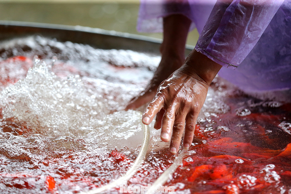Trưa 2/2 (tức 21 tháng Chạp), mặc dù còn 2 ngày nữa mới chính thức đến ngày tiễn ông Công ông Táo nhưng chợ cá Yên Sở đã tấp nập người dân cùng thương buôn mang cá chép đỏ từ khắp các tỉnh thành đổ về.