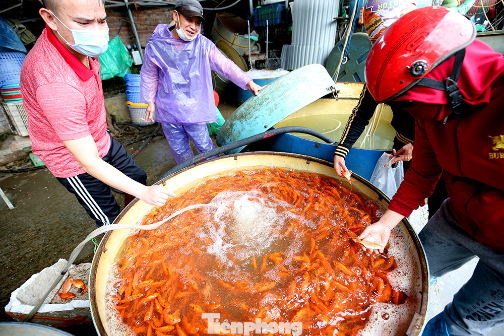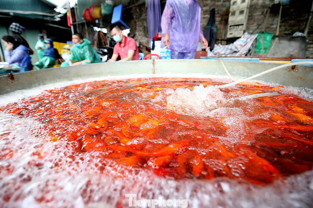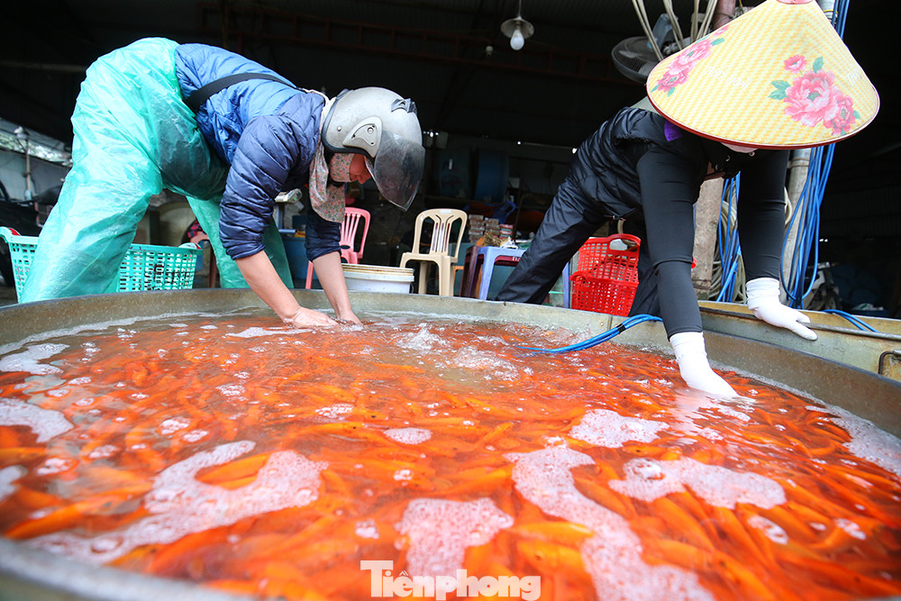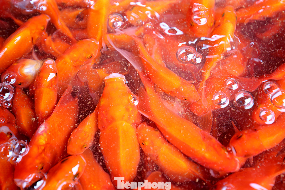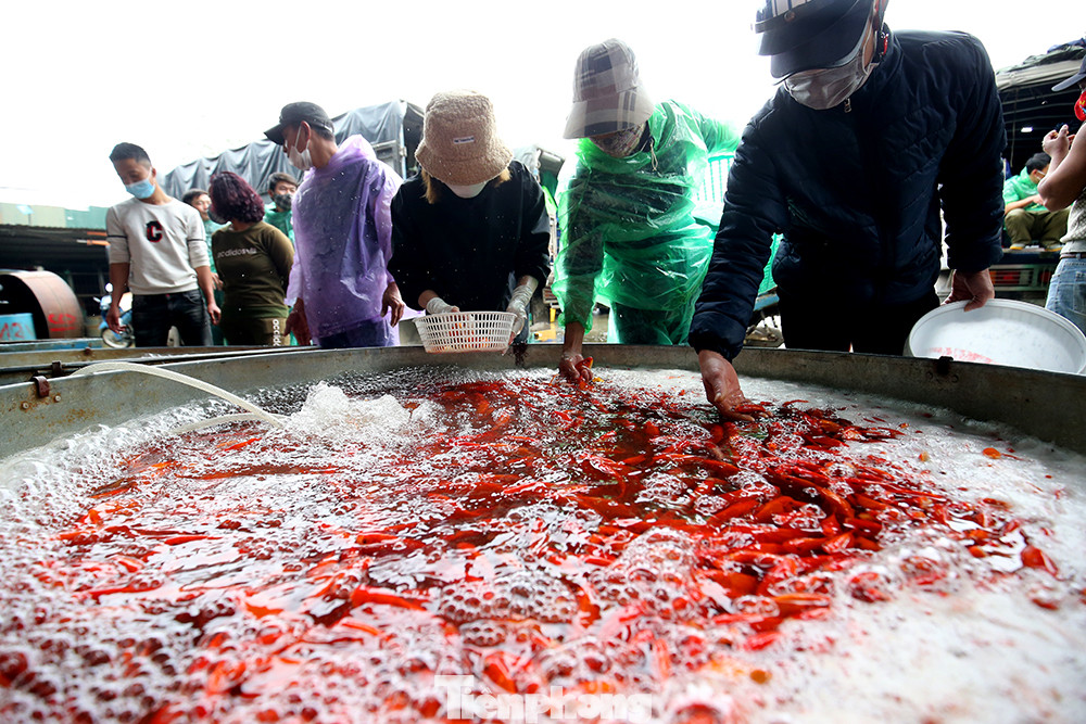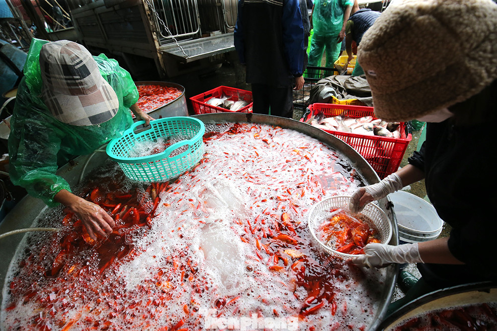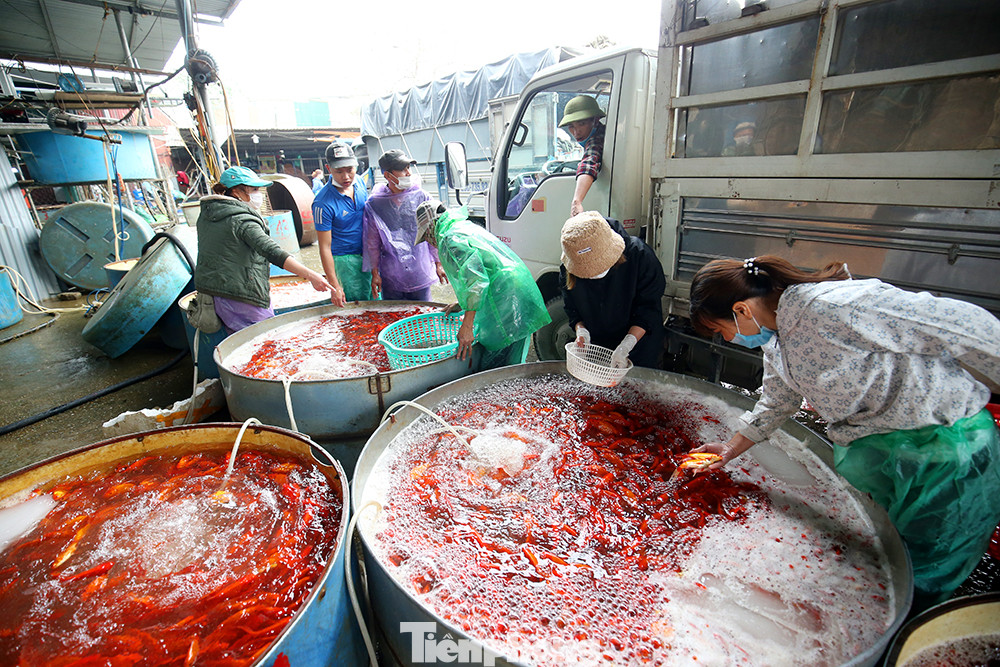 Hàng chục xe tải từ nhiều tỉnh thành như: Phú Thọ, Nam Định, Vĩnh Phúc…chở cá chép về chợ cá, sau đó được phân phối đến các chợ lớn, nhỏ tại Hà Nội để phục vụ nhu cầu người dân trong dịp cúng ông Công, ông Táo.