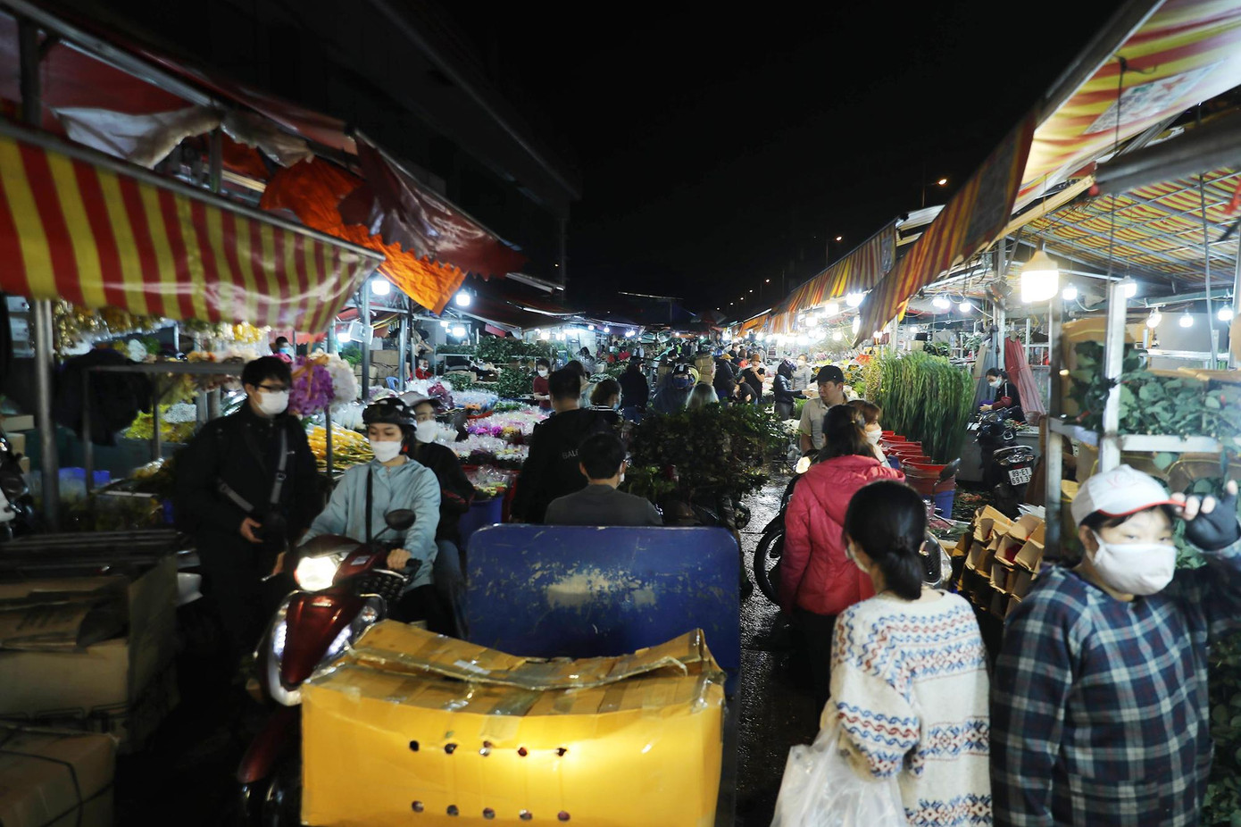 | Càng tới nửa đêm, những chuyến xe chở hoa đổ về chợ càng tấp nập. |