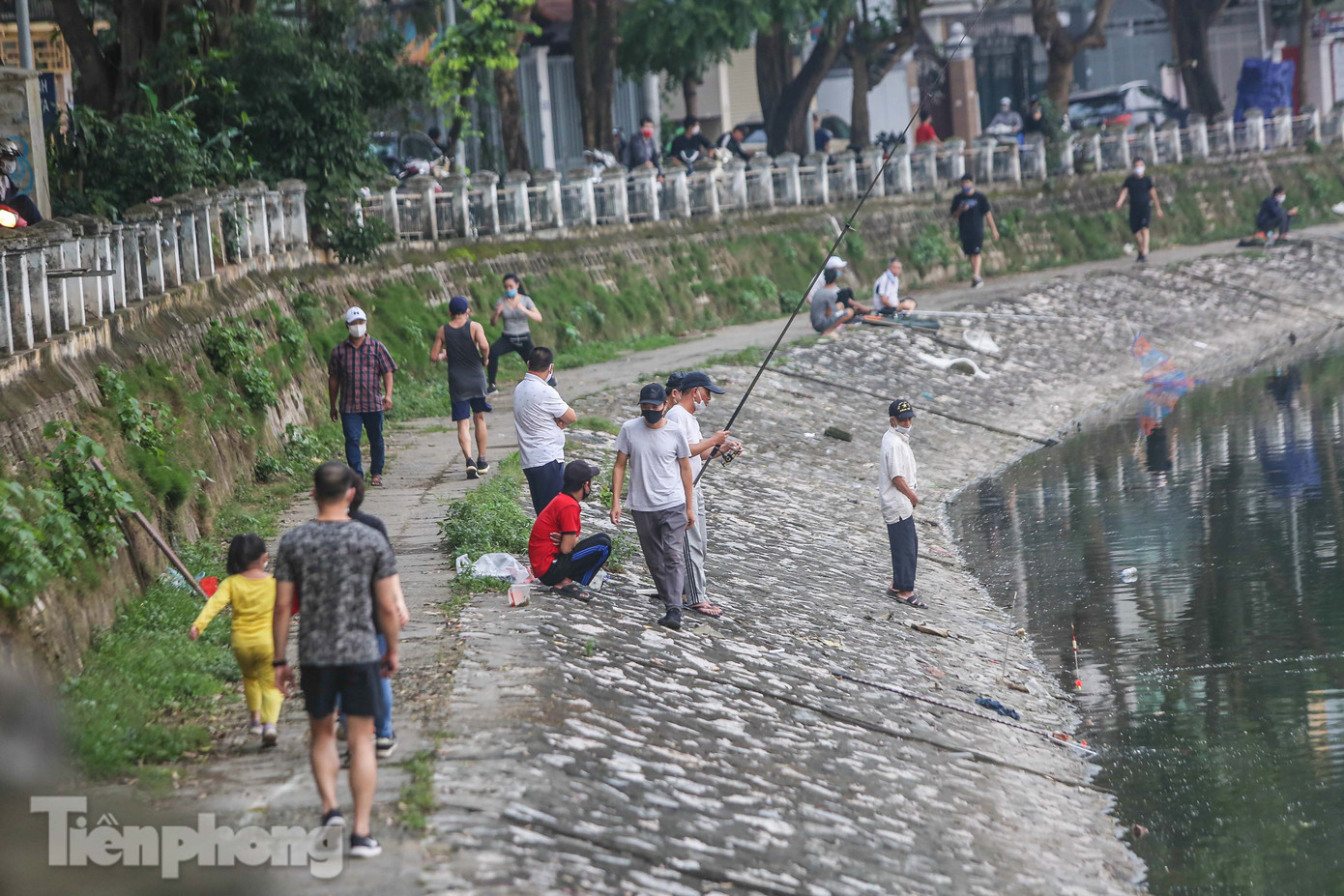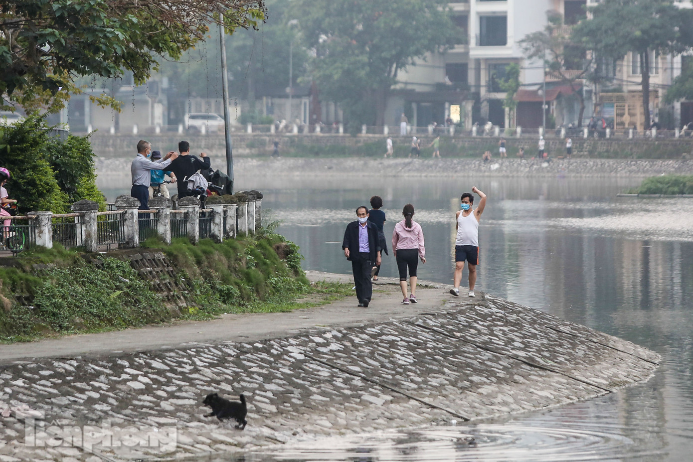 Rất đông người tập thể dục ở khu vực hồ Hoàng Cầu (quận Đống Đa, Hà Nội) vào chiều ngày 9/4.