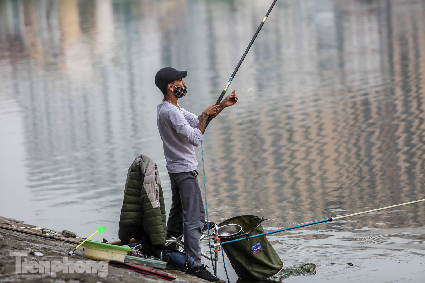 Cần thủ thoải mái dựng ghế, mang nhiều dụng cụ để câu cá.