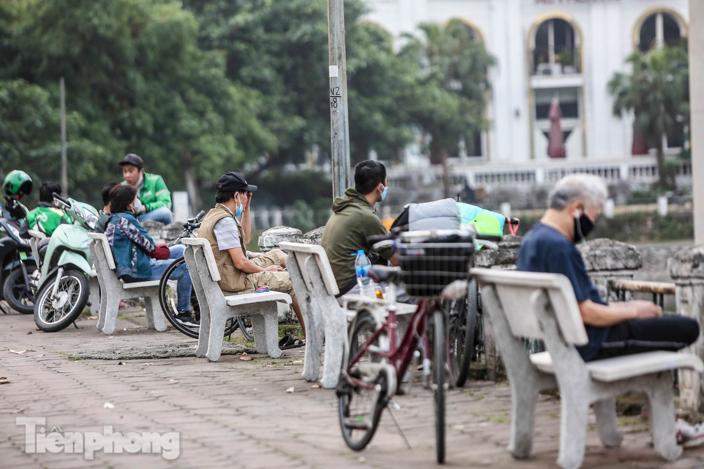 Hàng ghế đá là nơi tụ tập rất đông người.