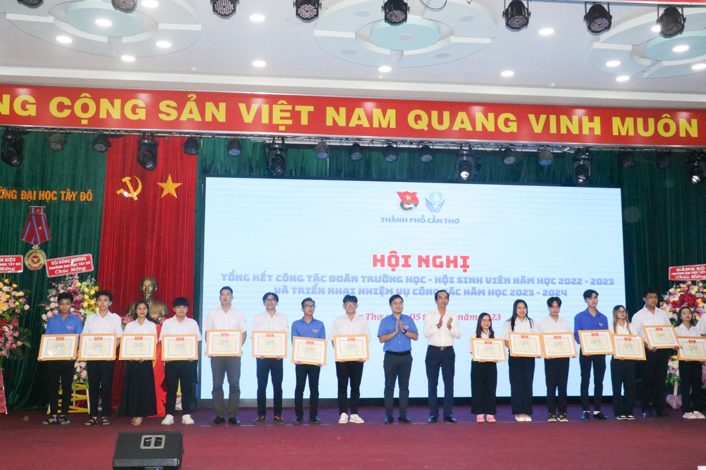 Dịp này, Ban Thư ký T.Ư Hội Sinh viên Việt Nam trao tặng Cờ thi đua đơn vị Xuất sắc trong công tác Hội và phong trào sinh viên năm học 2022 - 2023 cho Hội Sinh viên TP. Cần Thơ và Hội Sinh viên trường ĐH Tây Đô; tặng Bằng khen xuất sắc cho 16 tập thể, 32 cá nhân thuộc Hội Sinh viên Thành phố.