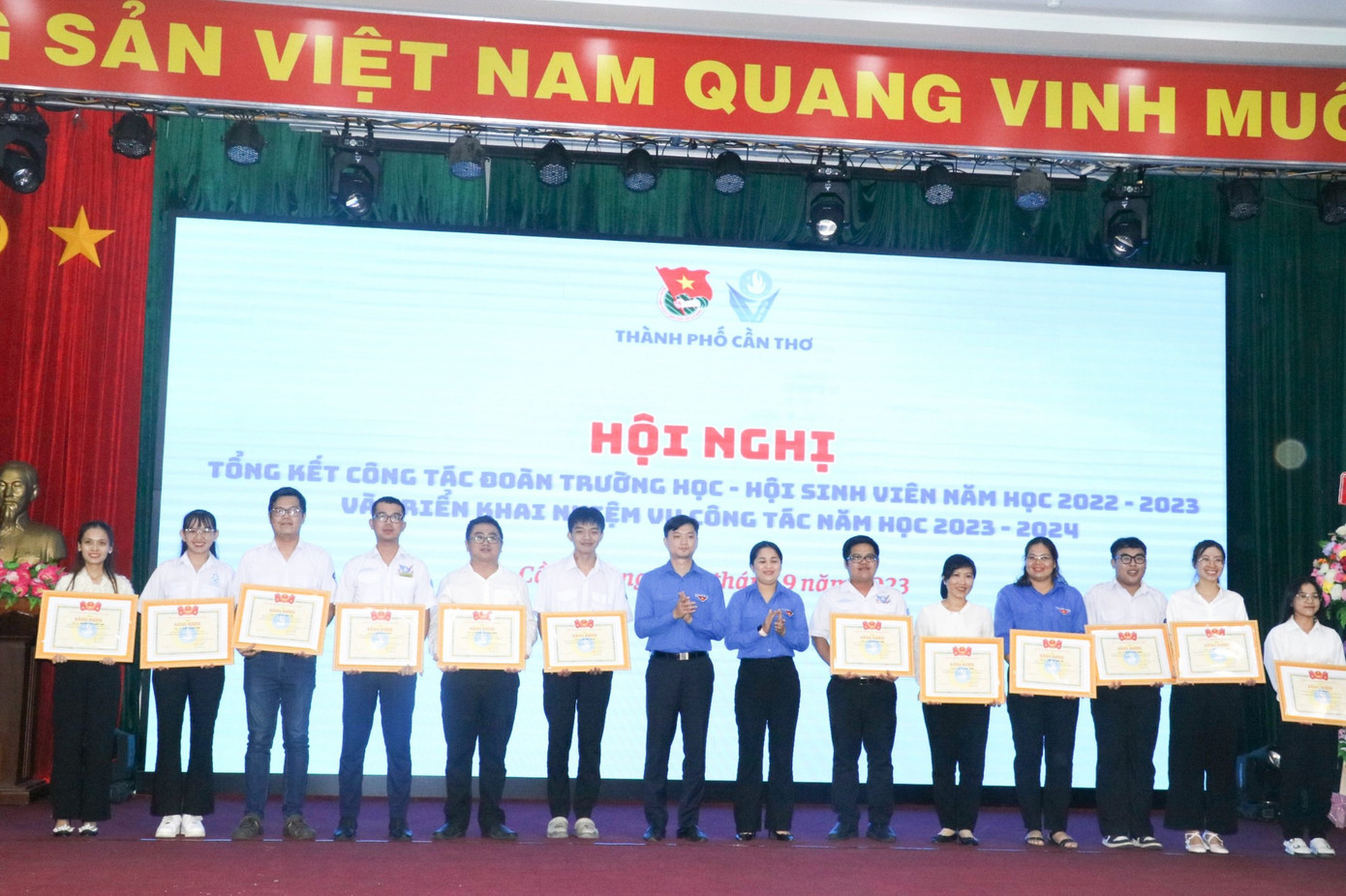 Công tác Đoàn trường học - Hội Sinh viên TP. Cần Thơ năm 2022 - 2023 đạt được nhiều kết quả tích cực. Theo đó, 23/26 chỉ tiêu năm học đều đạt và vượt mức, nổi bật như: Trồng ít nhất 10.000 cây xanh (đạt 430%); sinh viên đề xuất 10.000 ý tưởng, sáng kiến (đạt 200%); mỗi trường tổ chức ít nhất 1 hoạt động văn hóa, 1 hoạt động thể thao (đạt 200%); giới thiệu cho 5.000 sinh viên có việc làm ổn định (đạt 120%), vận động ít nhất 5 tỉ đồng giúp đỡ học sinh có hoàn cảnh khó khăn (đạt 100%).