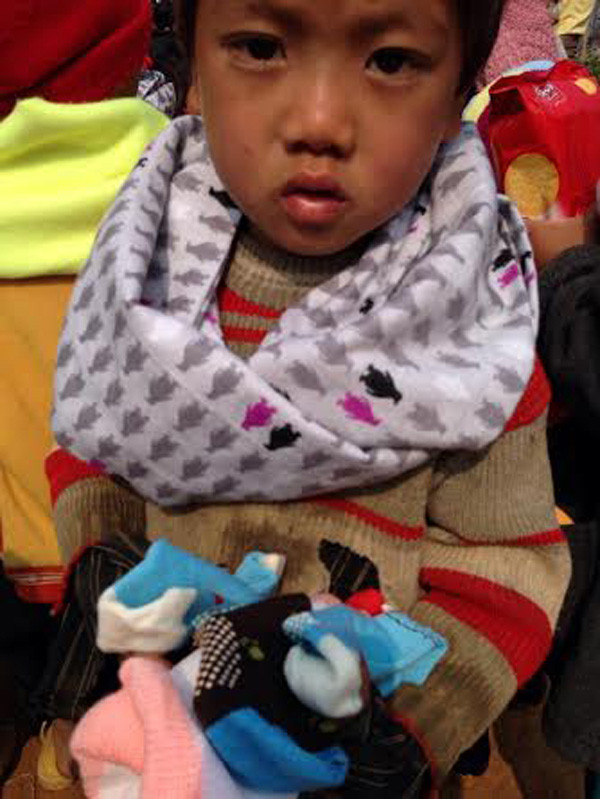 Hình ảnh cảm động về những em bé chân trần, những người mẹ ẵm con đến nhận tất khiến những người thực hiện chương trình thêm ấm lòng trong mùa đông giá lạnh.