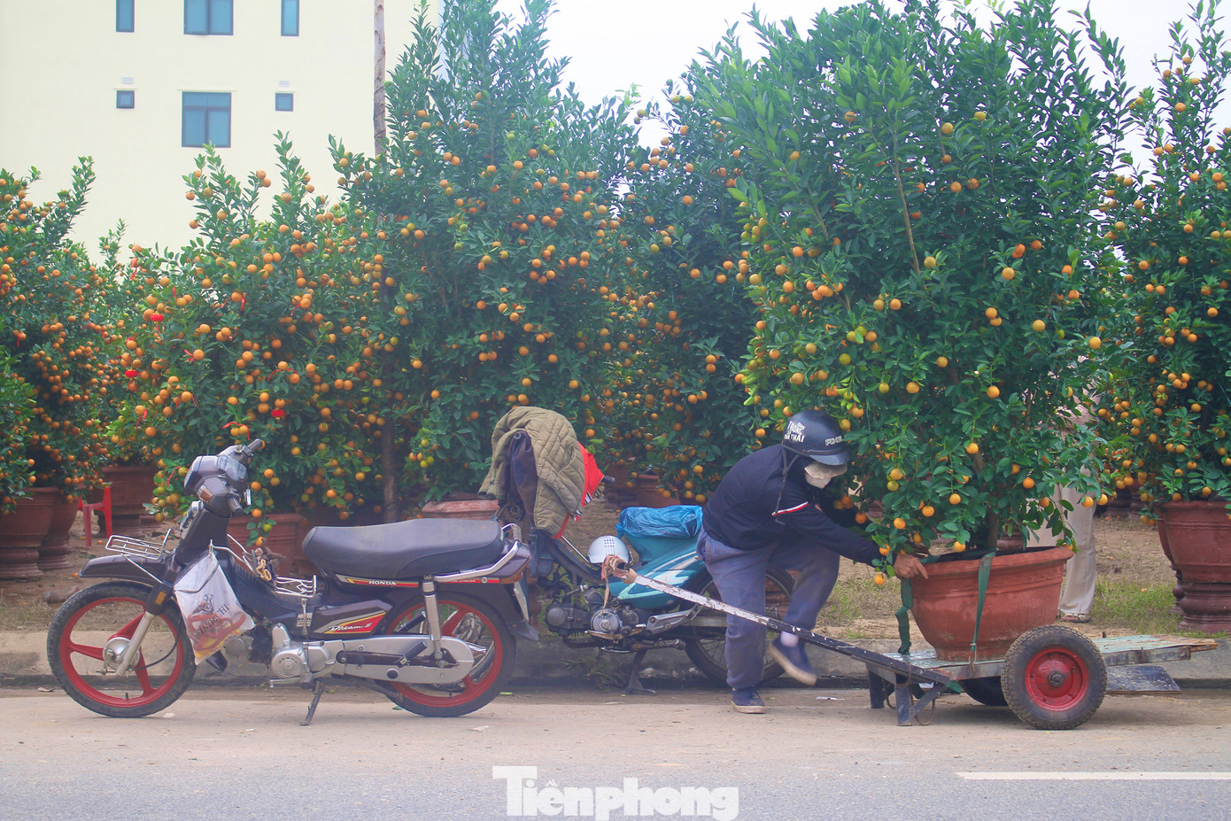 Ông Nguyễn Văn Tăng (49 tuổi, trú tại xã Hòa Liên, huyện Hòa Vang) chia sẻ, dù hoa Tết chỉ mới được mang ra bày bán nhưng đã có nhiều người mua. Ngày hôm nay, ông Tăng chở được 5 chuyến quất cảnh, thu về hơn cả triệu đồng. Ảnh: Minh Hiền