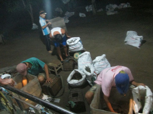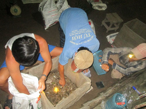 Trời về đêm càng lạnh thấu xương, bất chấp gió lạnh trên các cánh đồng vẫn nhấp nháy ánh đèn pin liên tục của dân săn nhái. Đến gần 1 giờ sáng, những người săn nhái lục đục kéo nhau về đếm nhái giao cho mối lái.