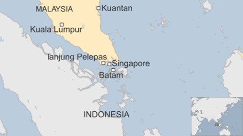 Vị trí Tanjung Pelepas, nơi tàu chở dầu khởi hành và đảo Batam. Đồ họa: BBC
