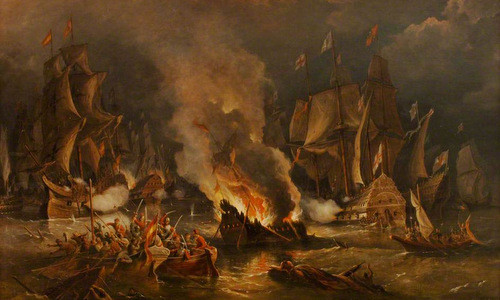Năm 1588, Tây Ban Nha tiến hành cuộc tấn công hải quân lớn nhất lịch sử vào Anh. Hạm đội tàu chiến mang theo 20.000 bộ binh và kỵ binh do công tước Medina-Sidonia chỉ huy băng qua eo biển Anh để hội quân cùng lực lượng của công tước Parma.