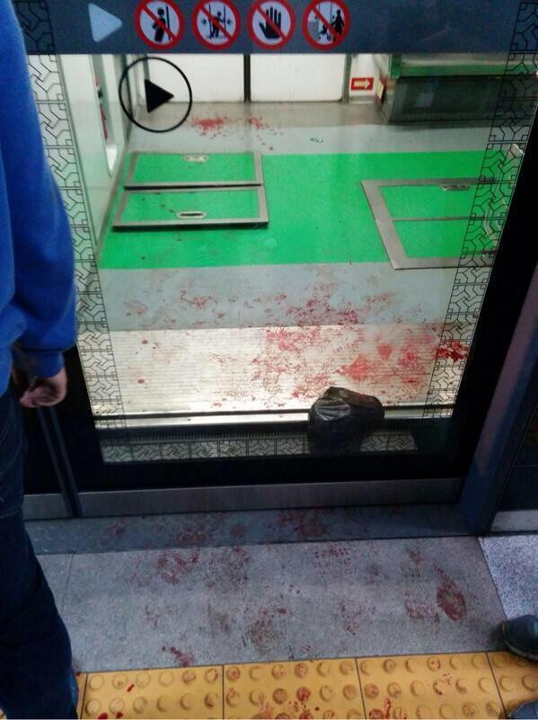 Nhân chứng cho biết, họ nhìn thấy máu vương vãi trên sàn chiếc tàu điện ngầm.