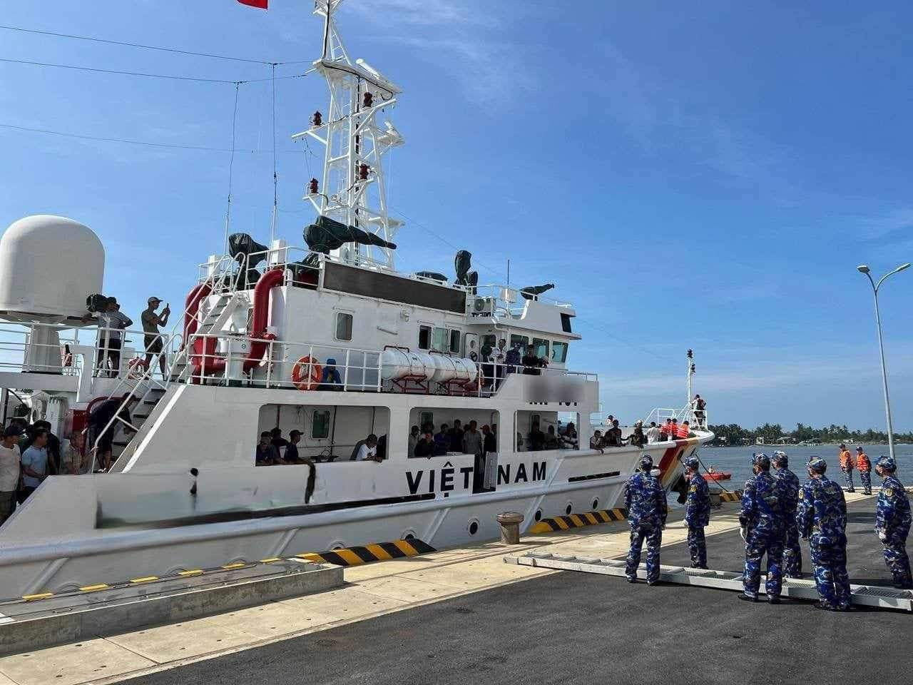 Tàu Hải quân đưa 78 ngư dân và 2 thi thể gặp nạn trên biển về đến đất liền.