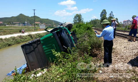 Lúc 10h57 phút sáng nay (27/6), tại đường ngang dân sinh km 245+950 ĐSTN (thuộc địa bàn thị xã Hoàng Mai, tỉnh Nghệ An), xe tải biển kiểm soát 37C-137.93 trong lúc lưu thông từ quốc lộ 1A băng qua đường ngang nói trên, đã bị tàu khách thống nhất số hiệu SE7 lưu thông hướng Hà Nội -TP.HCM tông phải.