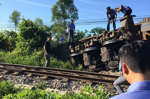"Khu vực tai nạn đường bộ hẹp, khó đưa xe cẩu lớn vào, buộc phải di chuyển bằng đường sắt, mất thời gian hơn. Chúng tôi phấn đấu thông đường trong ngày để không làm ảnh hưởng nhiều đoàn tàu dịp cao điểm", ông Chiến nói.