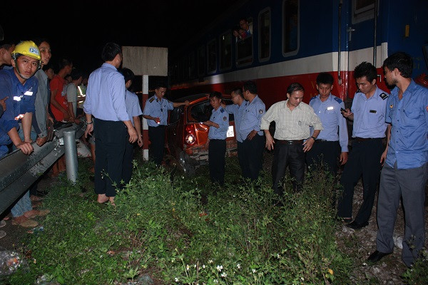Do thiếu quan sát nên chiếc xe con 4 chỗ bị đoàn tàu khách TN1 đang lưu thông với tốc độ cao hướng Hà Nội - Vinh đã tông trực diện hất văng xe ô tô 4 chỗ vào vệ đường gần 30m. Đầu xe 4 chỗ bẹp dúm, 4 người trong xe ( chưa xác định danh tính) bị chấn thương nặng.