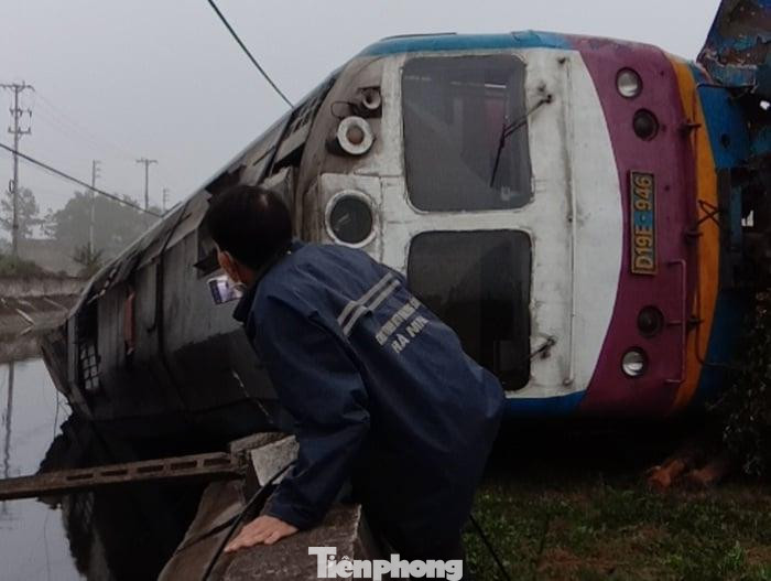 Cú va chạm mạnh khiến đầu máy mang ký hiệu D19E-946 bị văng ra khỏi đoàn tàu, rơi xuống mương nước cạnh đó. Toa tàu khác số 2 sát đầu máy cũng bị lực tác động lìa khỏi đoàn tàu, nằm xoay ngang trên đường sắt.
