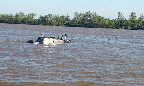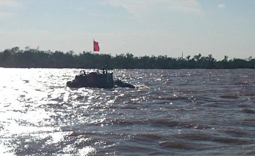Hai chiếc tàu cá của ngư dân làm hoa tiêu để lai dắt tàu ngầm ra ngoài phía cửa sông, tiến về phía phao số 0.