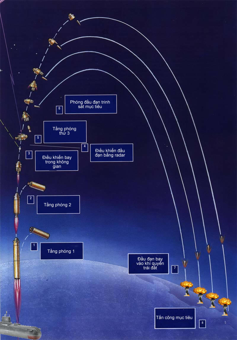Tên lửa liên lục địa (ICBM) – là tên lửa nhiều tầng đẩy, với động cơ tên lửa nhiên liệu lỏng hoặc rắn. mang theo các đầu đạn. Theo số lượng mang có thể là một đầu đạn hoặc nhiều đầu đạn, theo cơ chế điều khiển trong giai đoạn thụ động, có hai loại đầu đạn, loại không có điều khiển (rơi tự do) và loại có điều khiển (dẫn đường đầu đạn vào mục tiêu) đầu đạn có điều khiển là đầu đạn được điều khiển vào giai đoạn cuối của quỹ đạo đường bay, để có thể vượt qua được hệ thống phòng thủ tên lửa đạn đạo của đối phương, tấn công chính xác mục tiêu hoặc giải quyết cũng một lúc 2 nhiệm vụ vượt tuyến phòng thủ và đánh chính xác mục tiêu.