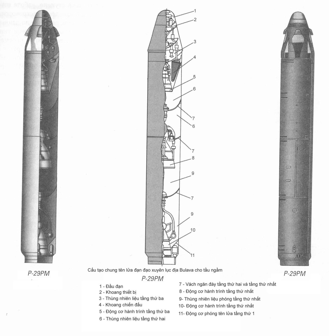 Tên lửa: Tên lửa trang bị trên tầu ngầm, phụ thuộc vào nhiệm vụ trọng tâm của tầu ngầm, có thể sẽ là tên lửa đạn đạo hoặc tên lửa hành trình – Hệ thống phóng tên lửa từ tầu ngầm là hệ thống phương tiện trang lắp đặt trên tầu ngầm, có chức năng tấn công tiêu diệt các mục tiêu trên đất liền hoặc trên biển. Hệ thống bao gồm: các tên lửa có điều khiển, thiết bị phóng tên lửa và thiết bị dẫn đường tên lửa, hệ thống thiết bị này gắn liền với hệ thống định vị và dẫn đường của tầu ngầm, đài radar dẫn đường thân tầu và đài sonar (phụ thuộc vào các loại tên lửa khác nhau) và các hệ thống trang thiết bị khác, xác định tọa độ tầu ngầm phóng tên lửa và vị trí của mục tiêu, phát hiện mục tiêu, theo dõi và bám mục tiêu, đồng thời cung cấp các thông tin cần thiết cho bộ phận dẫn đường và điều khiển tên lửa trong đầu dẫn của chính tên lửa.
