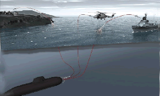 - Hệ thống thông tin liên lạc hai chiểu giữa trung tâm chỉ huy và tầu ngầm rất khó và phức tạp, đặc biệt ở chế độ phát ( tầu ngầm – đất liền). để có thể liên lạc tốt, thông thường tầu phải nổi lên ở độ sâu tiềm vọng. Khắc phục điểm yếu trên, các tầu ngầm hiện đại sử dụng loại ăn ten nổi và được kéo theo tầu, đồng thời phải phóng những mục tiêu phát tín hiệu radio giả để đánh lừa đối phương, diều hành hoạt động của mục tiêu giả mô phỏng hoạt động của tầu ngầm theo quỹ đạo, tốc độ và độ sâu.