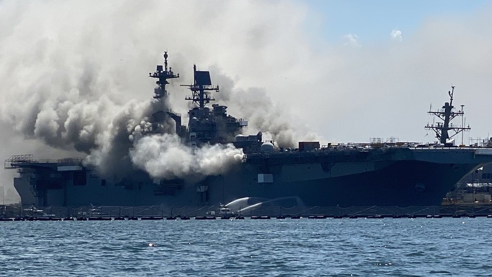 Cảnh quay từ hiện trường cho thấy khói đen bốc lên ngùn ngụt từ boong tàu.