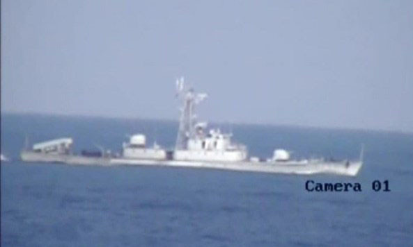 Tàu không rõ số hiệu của Trung Quốc đã phun nước trong khi tàu Hải cảnh mang số hiệu 46001 lao vào ngăn cản, đâm vào mạn trái tàu Cảnh sát biển 4032 làm gãy 10 mét lan can mạn trái, hỏng 3 thông gió tàu Cảnh sát biển 4032 của Việt Nam. Đồng thời, tàu Hải cảnh của Trung Quốc đã ngăn cản, dùng súng bắn nước vào tàu Kiểm ngư mang số hiệu 628 của Việt Nam khi tàu này tiếp cận giàn khoan Trung Quốc.