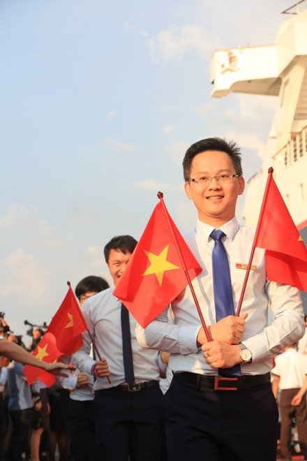 Bí thư Trung ương Đoàn, Phó chủ nhiệm thường trực Ủy ban quốc gia về thanh niên Việt Nam – Nguyễn Long Hải, Bí thư Thành đoàn TPHCM Nguyễn Mạnh Cường, các đại biểu UBND TP, cùng gần 1.000 thanh niên, tuổi trẻ TPHCM có mặt để chào mừng đoàn đại biểu trên tàu.