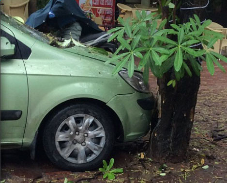 Khi đến ngã tư, xe taxi bất ngờ đâm vào xe máy chạy cùng chiều do một người phụ nữ điều khiển. Sau đó, xe taxi tiếp tục lao lên vỉa hè và tông vào một gốc cây rồi mới dừng lại.