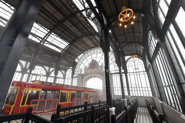 Ga đến Tàu hỏa leo núi Mường Hoa tại khuôn viên khu du lịch Sun World Fansipan Legend cũng là một kiệt tác kiến trúc nối tiếp hành trình tuyệt diệu ấy. Sảnh lát đá hoa cương sáng bóng, mái vòm cao lớn, các họa tiết trang trí tinh tế kết hợp với tông màu cổ điển sang trọng, đến cả những dàn đèn chiếu sáng cũng trở thành điểm nhấn đầy nghệ thuật giữa không gian mờ sương của buổi sớm Mường Hoa