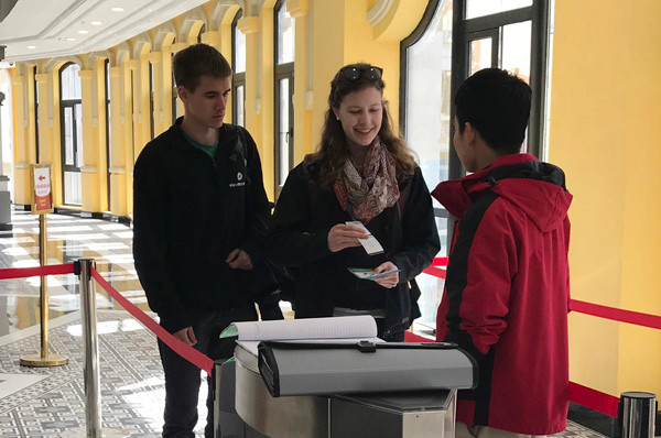 Ngày khai trương 31/3, quầy vé Tàu hỏa leo núi Mường Hoa tại tầng hầm khách sạn 5 sao MGallery ở thị trấn Sa Pa rộn ràng. Rất đông du khách là người dân sinh sống quanh Sa Pa cũng hồi hộp, náo nức xếp hàng mua vé từ sớm để trải nghiệm hành trình tàu tốc hành, thưởng ngoạn cảnh sắc quê hương.