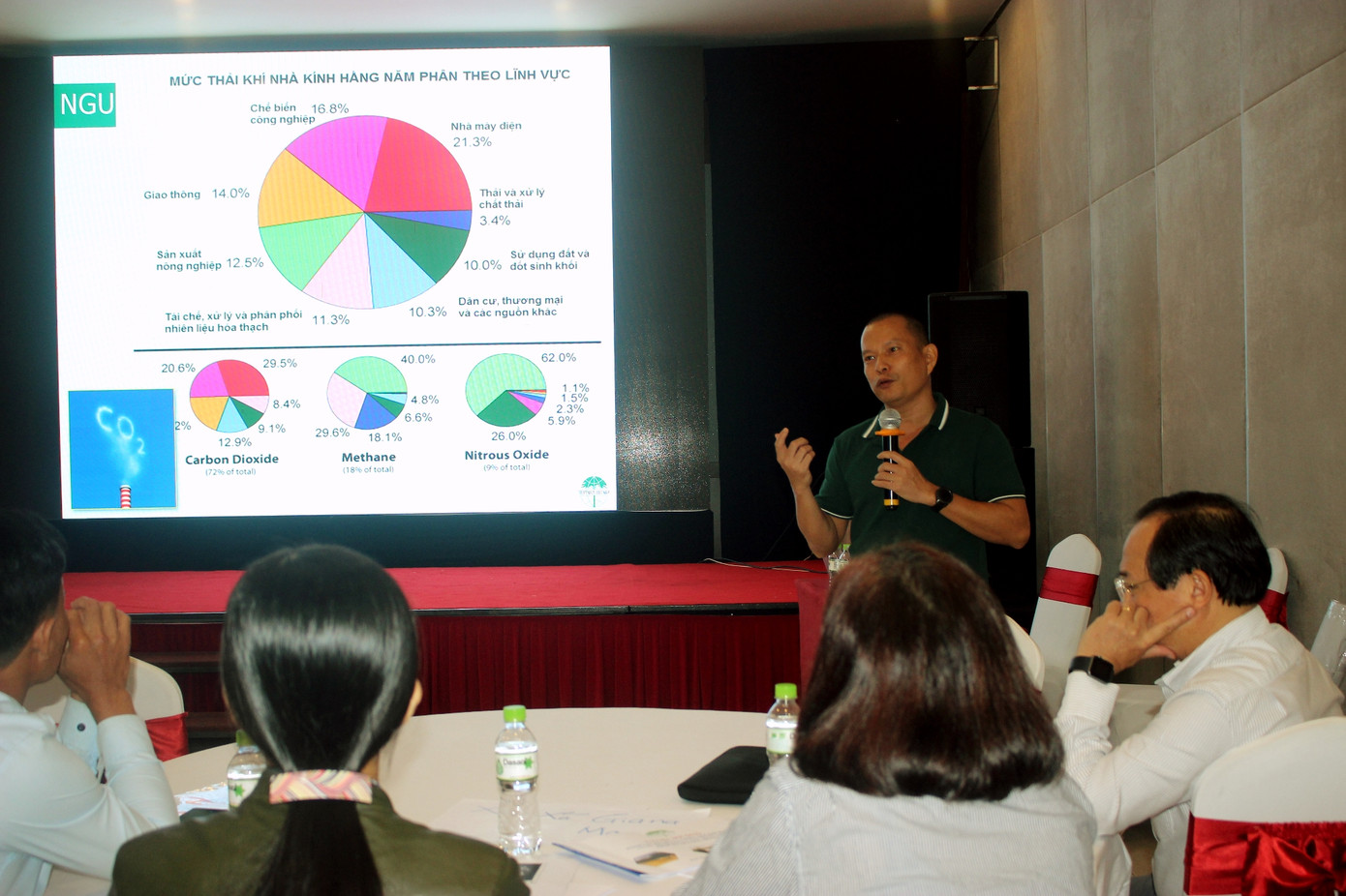 Mở đầu cuộc hội thảo, ông Trần Nam Thắng, chuyên gia Tropenbos Việt Nam chiếu những hình ảnh tang thương do mưa lũ, sạt lở đất ở miền Trung-Tây Nguyên để dẫn chứng cho hậu họa của BĐKH và cái giá của việc ồ ạt phá rừng, chuyển đổi rừng và đất lâm nghiệp sang mục đích kinh tế khác.