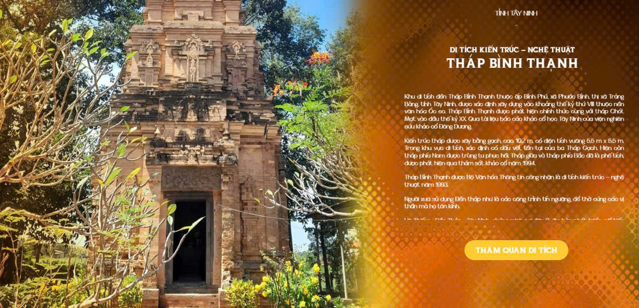 Thực hiện chuyển đổi số thí điểm khu Di tích tháp Bình Thạnh đã hoàn thành việc ra mắt. Ở giai đoạn này, các điểm di tích được kết hợp cùng công nghệ hình ảnh 360 tạo nên Tour tham quan thực tế ảo.