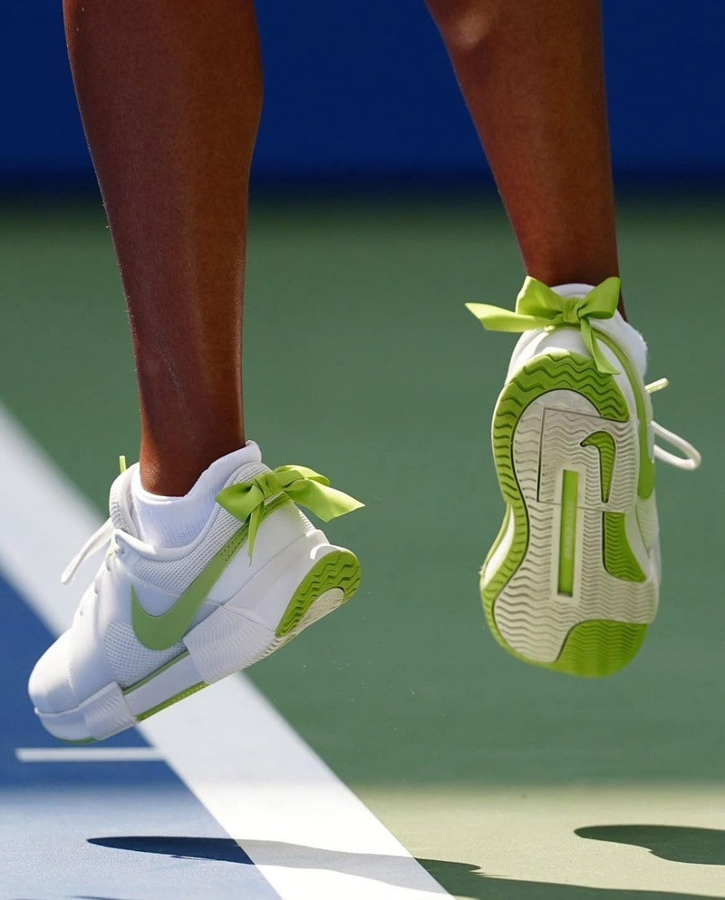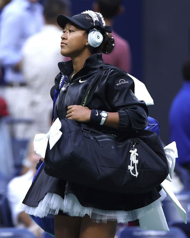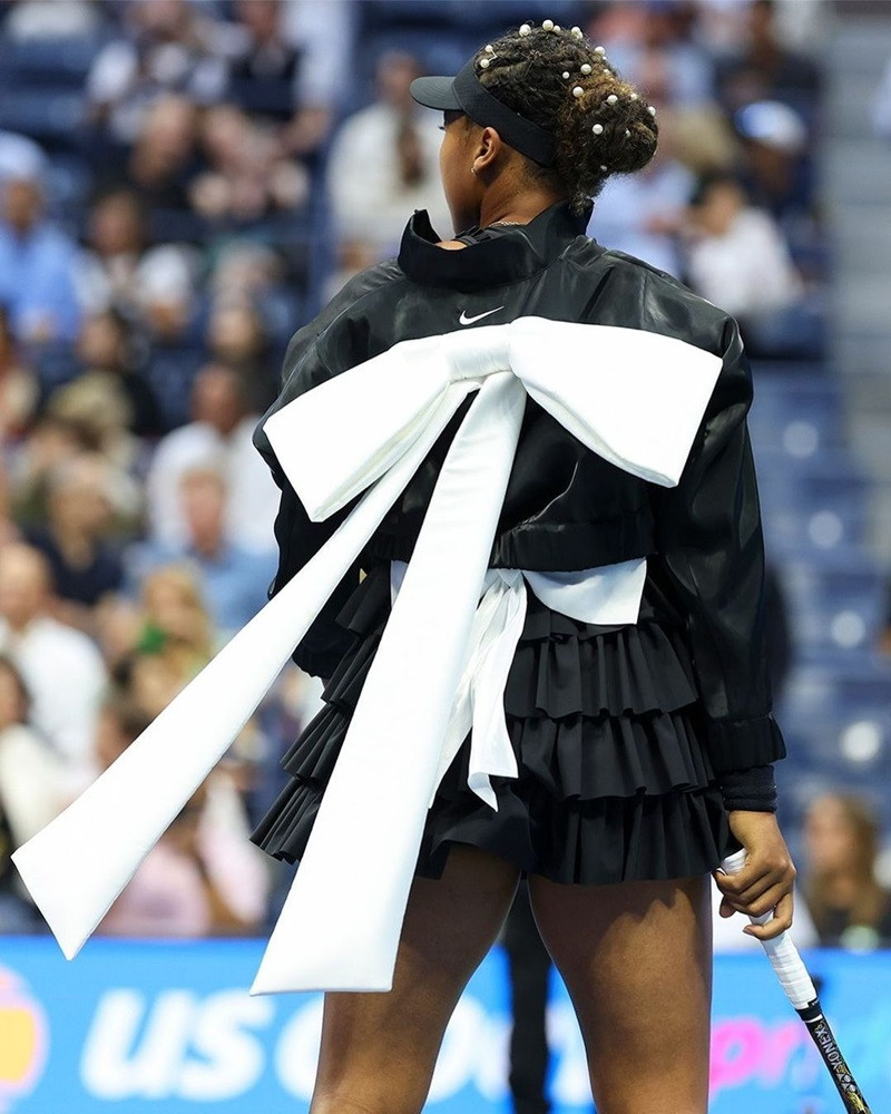 Khi tham gia thi đấu tại giải Mỹ Mở rộng 2024, tay vợt Nhật Bản Naomi Osaka đã khiến mọi người xôn xao khi xuất hiện trên sân thi đấu với trang phục đầy phong cách. Những chiếc nơ nữ tính, đủ mọi kích cỡ, từ siêu to đến nhỏ xinh đều được Naomi Osaka gắn lên áo khoác, váy, thậm chí cả túi đồ, giày, tai nghe.