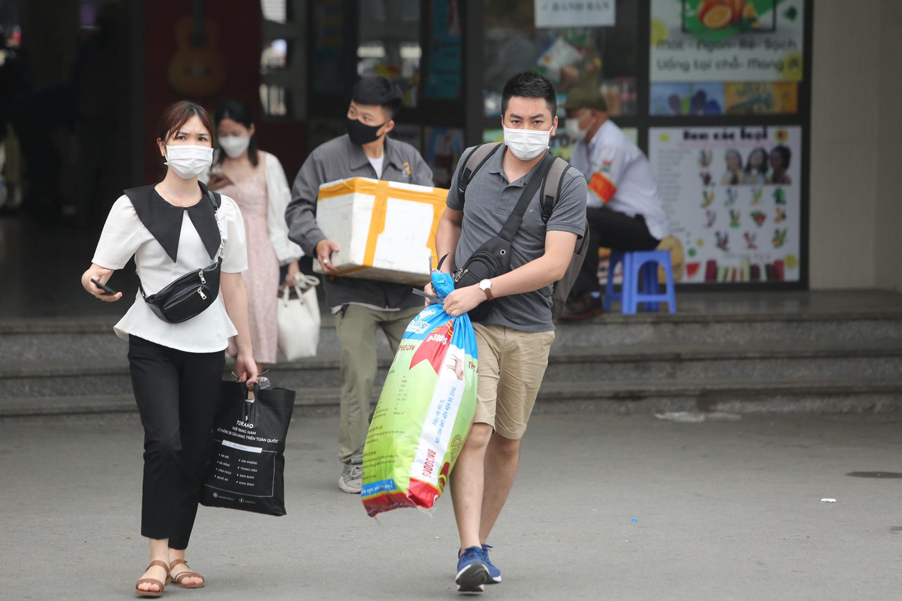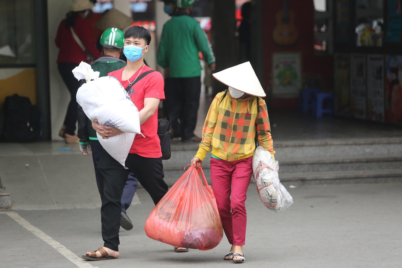 | Sau kỳ nghỉ lễ kéo dài 3 ngày, nhiều người "tay xách nách mang" đủ thứ khi trở lại Hà Nội. |