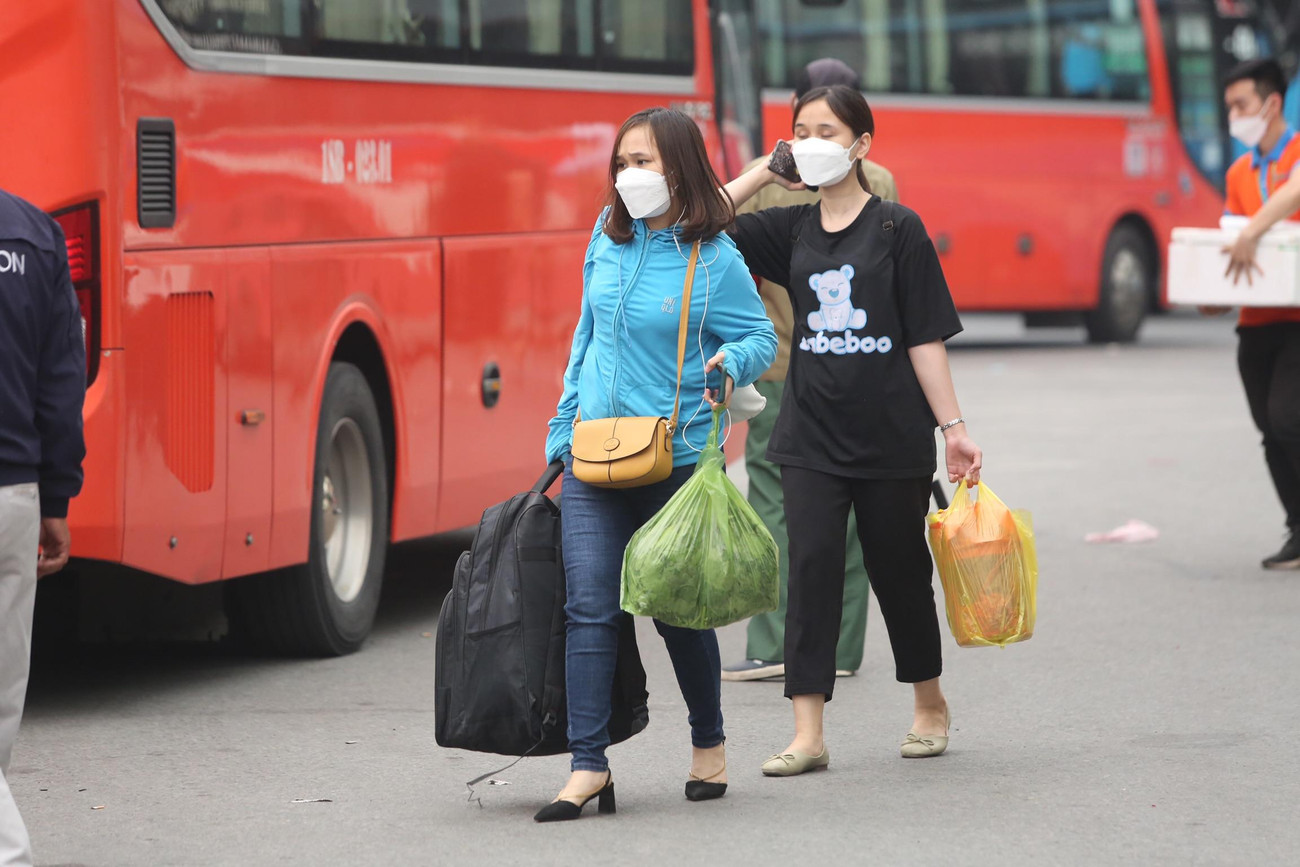 | Ghi nhận tại bến xe Giáp Bát (Hà Nội) chiều 11/4, không khí khá nhộn nhịp với những chuyến xe đưa người từ các địa phương trở lại Hà Nội. |