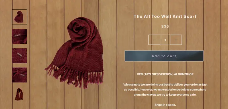 Dù vậy, mọi chuyện chỉ dừng lại ở sự suy đoán từ phía dư luận vì chính chủ Taylor Swift vẫn giữ im lặng. Bên cạnh đó, việc cô mở bán chiếc khăn đỏ trong chiến dịch quảng bá album Red cũng phần nào cho thấy sự việc không đi quá xa như mọi người nghĩ.