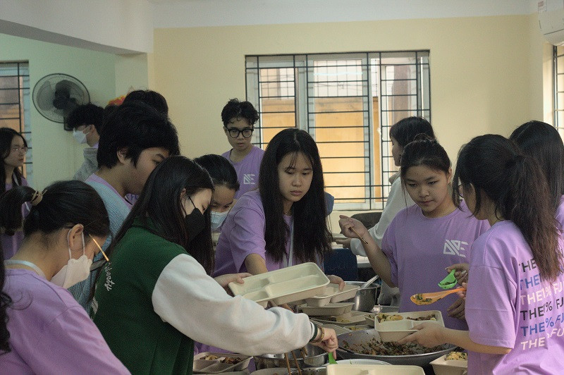 Các bạn teen đã cùng nhau có mặt từ sáng sớm để nấu nướng, chuẩn bị những suất cơm để gửi đến những người lao động, người vô gia cư.