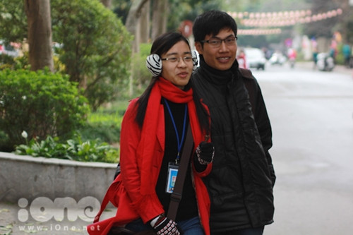 Các bạn nam ngày thường ăn mặc phong phanh là thế giờ cũng phải cẩn thận mặc áo cao cổ, quấn khăn len.