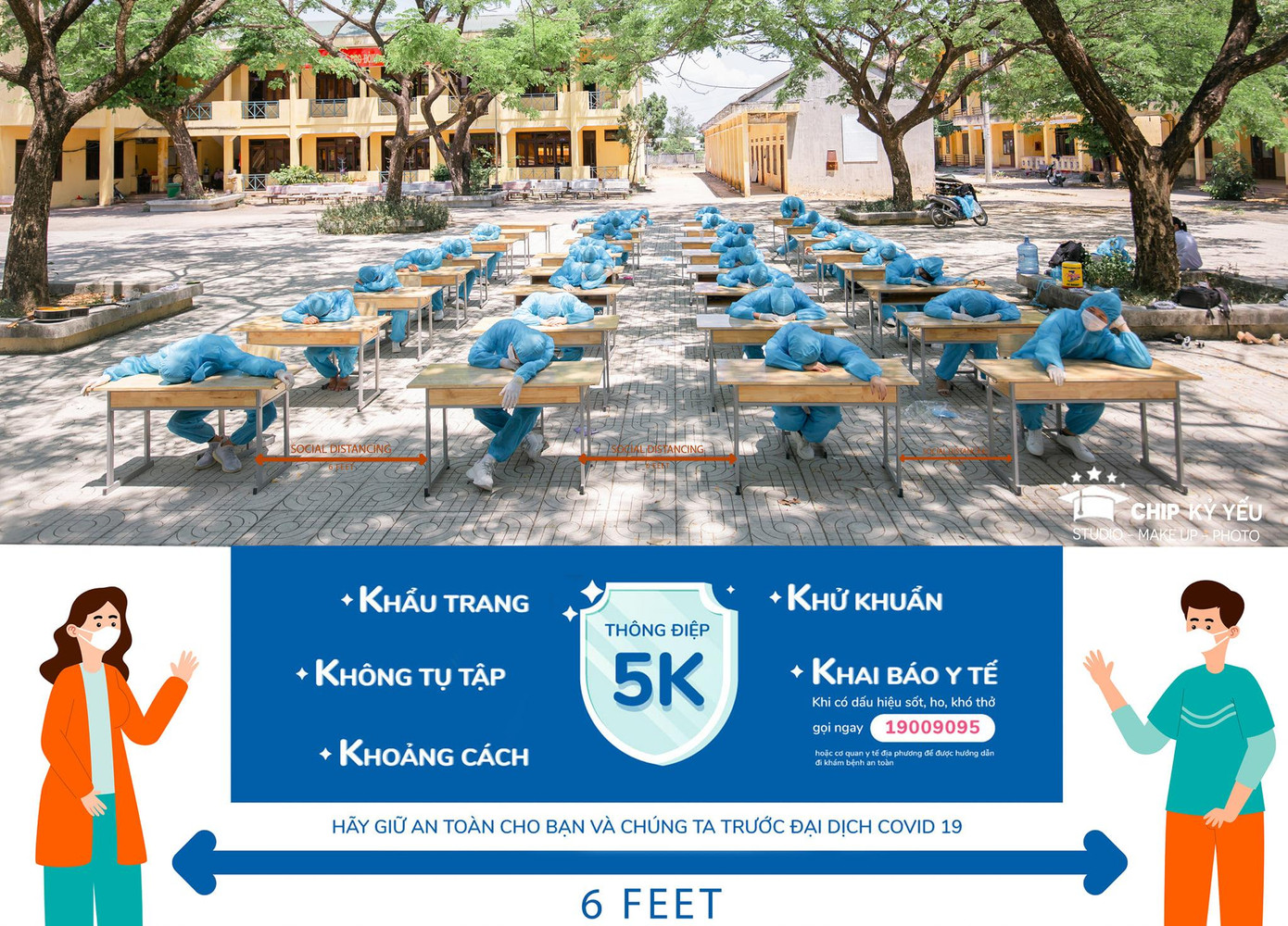HHTO - Thay vì lựa chọn các ý tưởng cầu kỳ, hoành tráng thì các bạn teen này lại nghĩ ra một ý tưởng khá độc đáo. Thông qua bộ ảnh "thông điệp 5K" cả lớp muốn tri ân các bác sĩ tuyến đầu chống dịch cũng như nâng cao ý thức chống dịch cộng đồng.