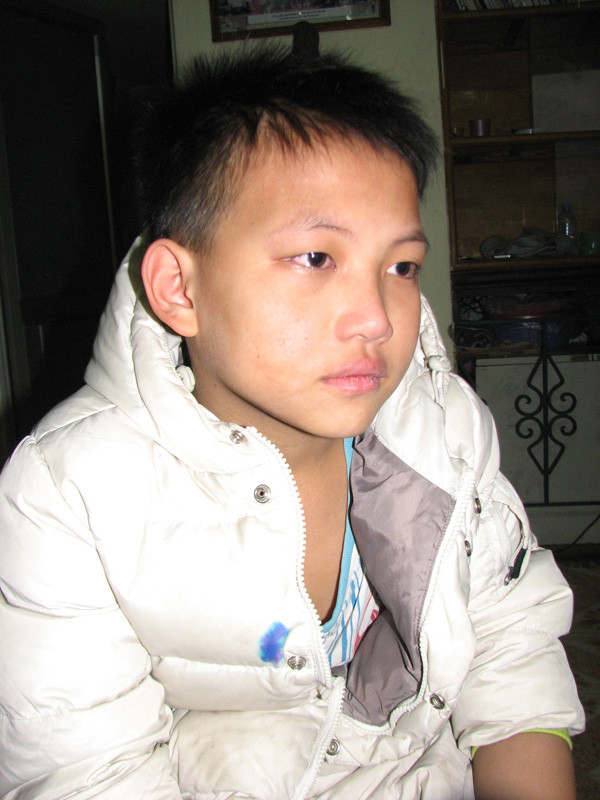 Em vừa tan giờ học ở trường tiểu học Văn Chương, quận Đống Đa (Hà Nội). Lự khôi ngô trong chiếc áo khoác phao trắng nhưng ngả màu được một người phụ nữ tốt bụng mang cho. Lự cho biết, em đã học xong một lớp tiếng Việt và đang học lớp 2.