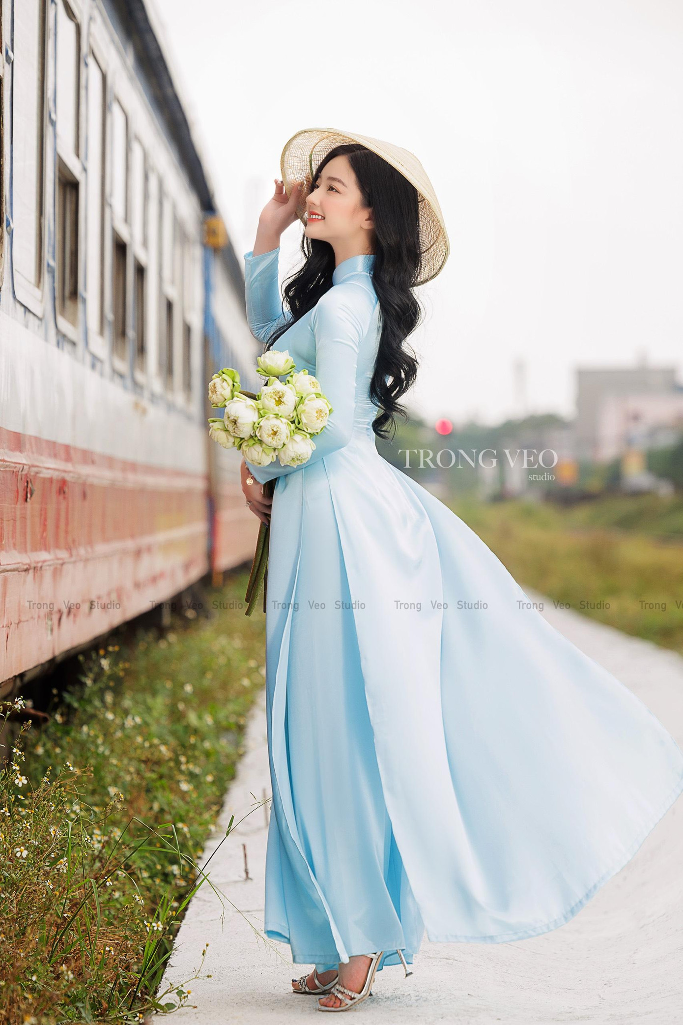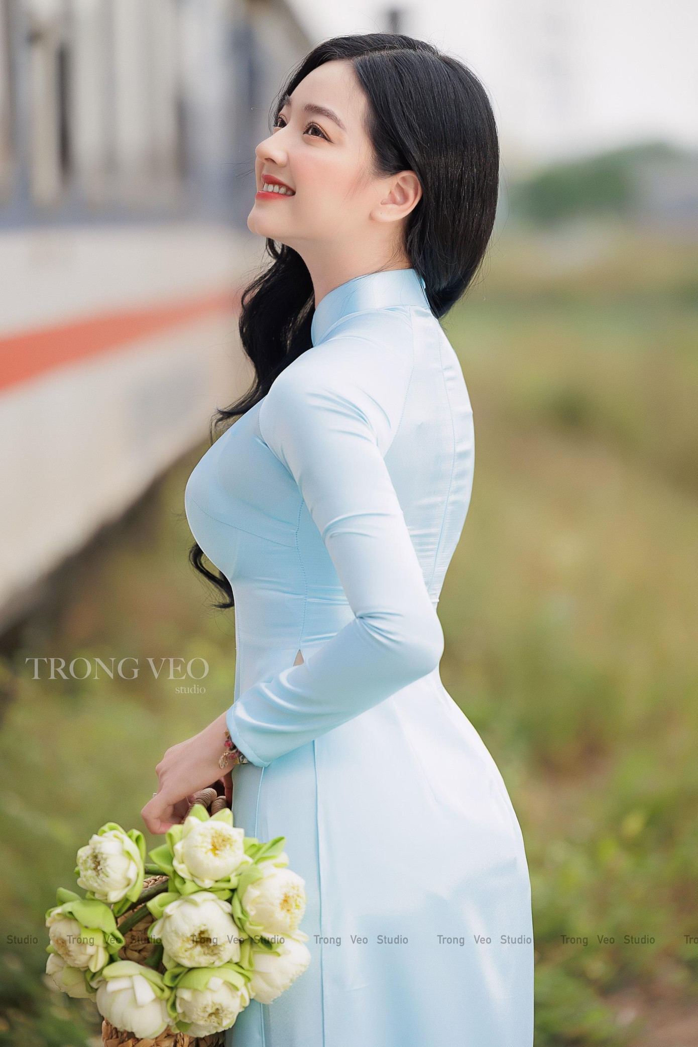 Trái với việc chụp hình tại studio như Mỹ Quyên, bạn Lê Vũ Quỳnh Trâm (sinh năm 1995) đến từ Thanh Hoá lại lựa chọn khung cảnh ngoài trời, cụ thể là nhà ga tàu hỏa làm nơi lưu lại những khoảnh khắc đẹp của mình.