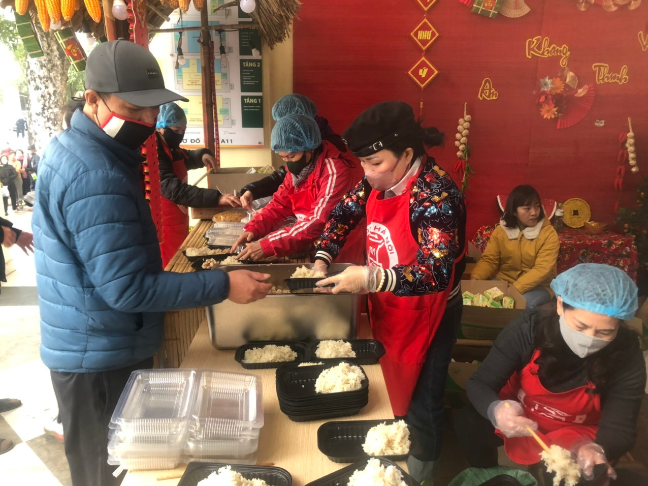 “Gian hàng Tết O đồng” trong ngày mùng 1 Tết đã phục vụ miễn phí 700 suất xôi, 500 bánh mỳ que Hải Phòng, xúc xích, sữa, mì tôm cốc ăn liền, phở ăn liền, hoa quả, bánh ngọt và các mặt hàng nhu yếu phẩm thiết thực khác. Ngay từ đầu giờ sáng, TS. bác sĩ Đoàn Thu Trà, Chủ tịch Công đoàn Bệnh viện Bạch Mai cùng một số lãnh đạo đơn vị đã có mặt bên các nhà hảo tâm, trao tận tay những suất xôi dẻo thơm nóng hổi cho người nhà bệnh nhân. Các nhân viên Phòng Công tác xã hội và một số tình nguyện viên trong các nhóm từ thiện luôn bận rộn để chia các suất quà với mong muốn ai cũng có phần trong bối cảnh ngày Tết hàng quán xung quanh đều nghỉ. Các nhà hảo tâm không quản đường xa, thời tiết giá rét đã đến chia sẻ tấm lòng của mình với những số phận thiệt thòi hơn.