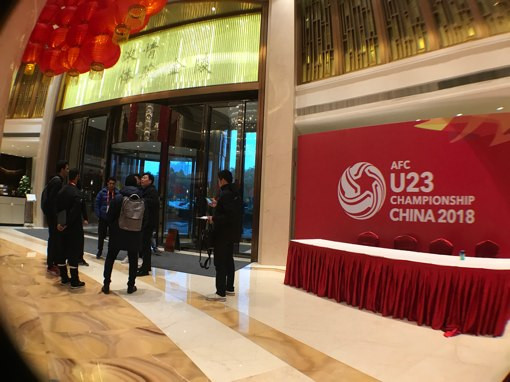 Sau hơn 1 giờ di chuyển, xe ô tô chở đội U23 Việt Nam đã có mặt tại khách sạn Jinling Grand. Đây là khách sạn 5 sao, đáp ứng đủ các yêu cầu về ăn nghỉ, đồng thời đội có thể tập nhẹ. Sau khi có mặt tại khách sạn Jinling Grand, HLV Park Hang Seo và các cầu thủ đã làm thủ tục nhập phòng. U23 Việt Nam được bố trí ở tại tầng 8 của khách sạn.