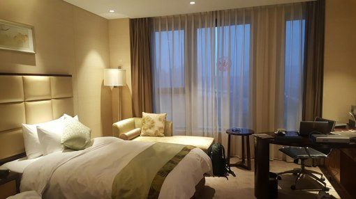 Tuyển U23 Việt Nam được bố trí các phòng ở tầng 8 khách sạn Jinling Grand. Đây là khách sạn 5 sao, các phòng đều rất đẹp.
