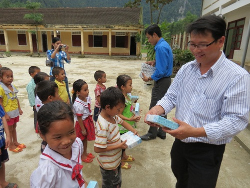 Cùng ngày, đoàn công tác của báo Tiền Phong, tỉnh Đoàn Quảng Bình cũng đã tặng sữa TH True Milk cho dân bản Phú Minh, trường mầm non và trường tiểu học xã Thượng Hóa.