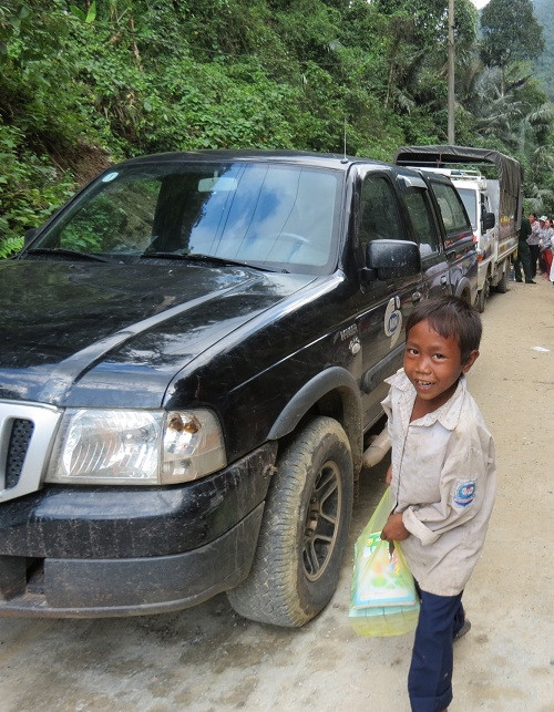 Nhiều người dân xúc động, cảm ơn báo Tiền Phong đã thông tin, giúp người dân đỡ đói. Tỉnh Đoàn Quảng Bình cũng đã mang theo áo quần và vỡ viết tặng các em học sinh nơi đây.