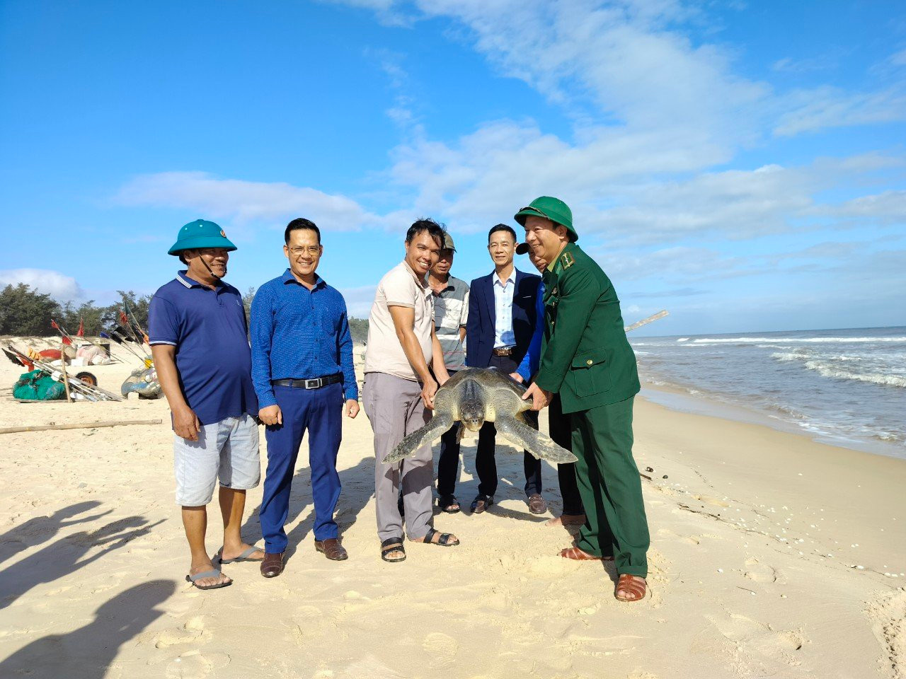 Ngay sau đó, ba ngư dân này đã thông tin đến tình nguyện viên bảo vệ rùa biển xã Triệu Vân và Khu Bảo tồn biển đảo Cồn Cỏ để được hướng dẫn cứu hộ. Nhận được thông tin, Khu Bảo tồn biển đảo Cồn Cỏ đã phối hợp với Đồn Biên phòng Triệu Vân và chính quyền xã Triệu Vân tiếp nhận, kiểm tra sức khỏe và cùng với ngư dân thả cá thể đồi mồi dứa này trở lại về biển an toàn.