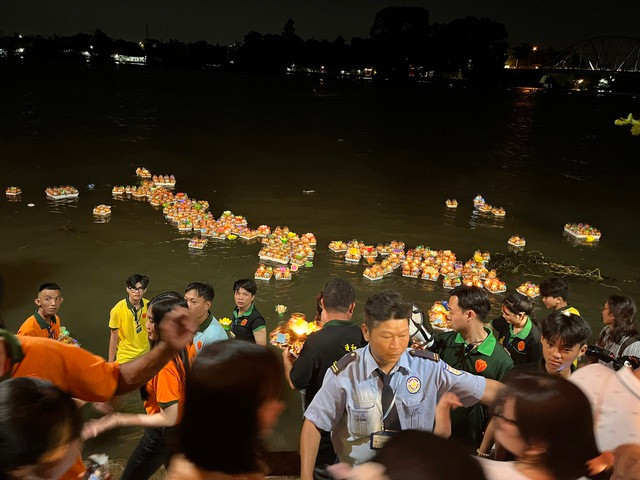 Chương trình thả hoa đăng thu hút đông đảo người dân trong nước và du khách quốc tế đứng 2 bên bờ sông Đồng Nai theo dõi.