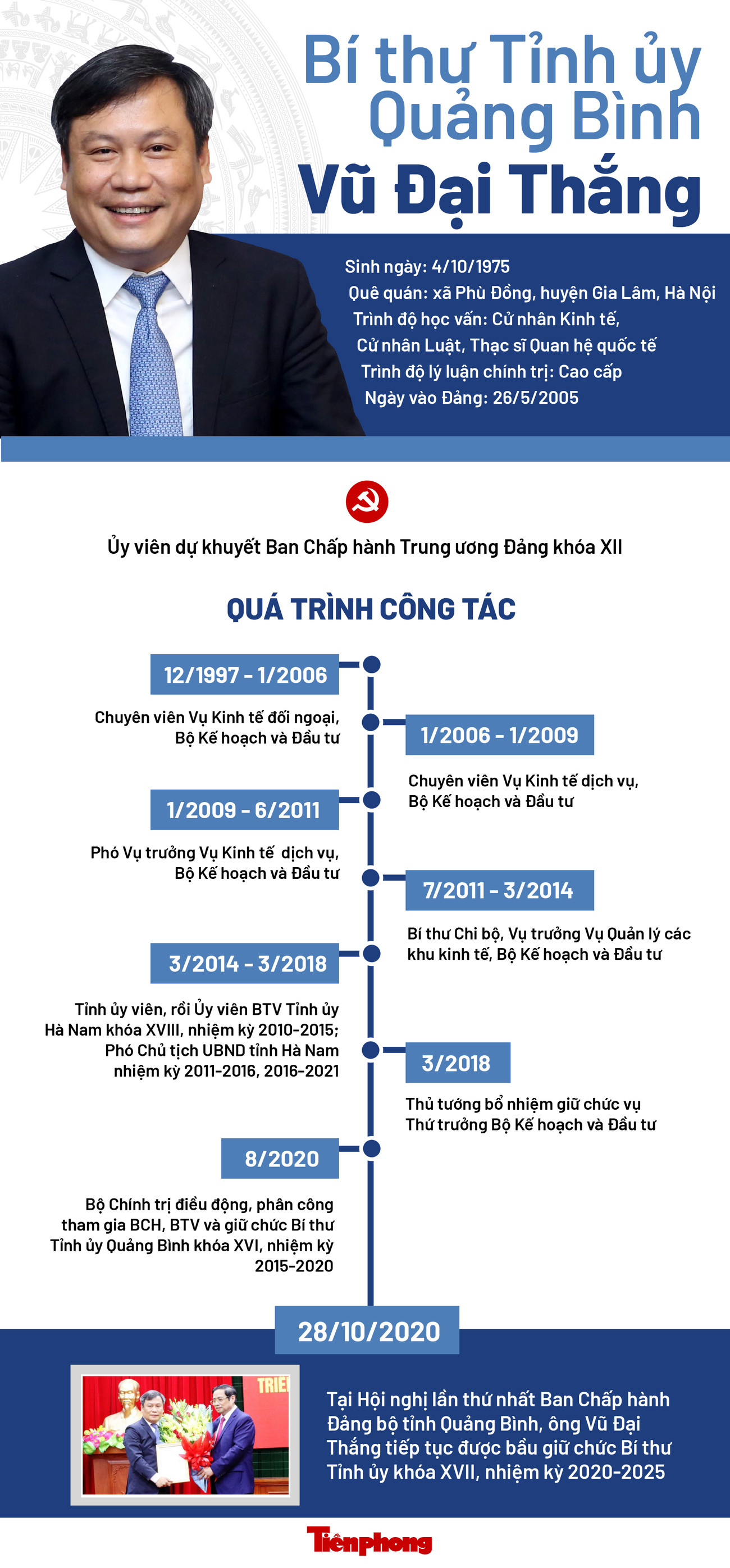 TPO - Ông Vũ Đại Thắng, Bí thư Tỉnh ủy Quảng Bình khóa XVI, tiếp tục được bầu giữ chức Bí thư Tỉnh ủy nhiệm kỳ 2020-2025.